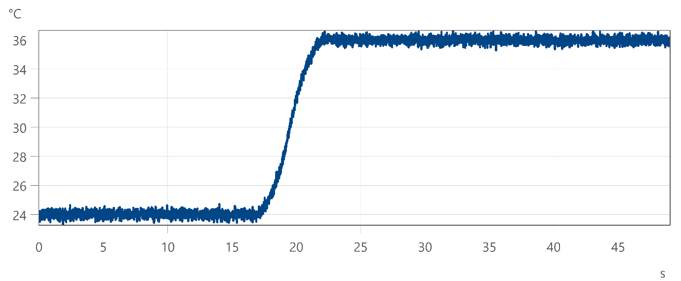 In this example, an input uncertainty of 0.25 °C is defined and 1000 Monte Carlo tests are carried out. At the end, the calculated measurement uncertainty of the rise time is queried.