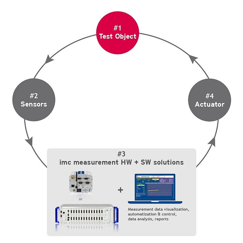 To meet these manifold requirements, an integrated solution his highly preferred, based on flexible components in terms of hardware and software. imc CRONOS and imc STUDIO offer a perfect solution for this task. They allow to easily realize test stand applications of various scales for components not only for automotive, but from any possible field and industry.