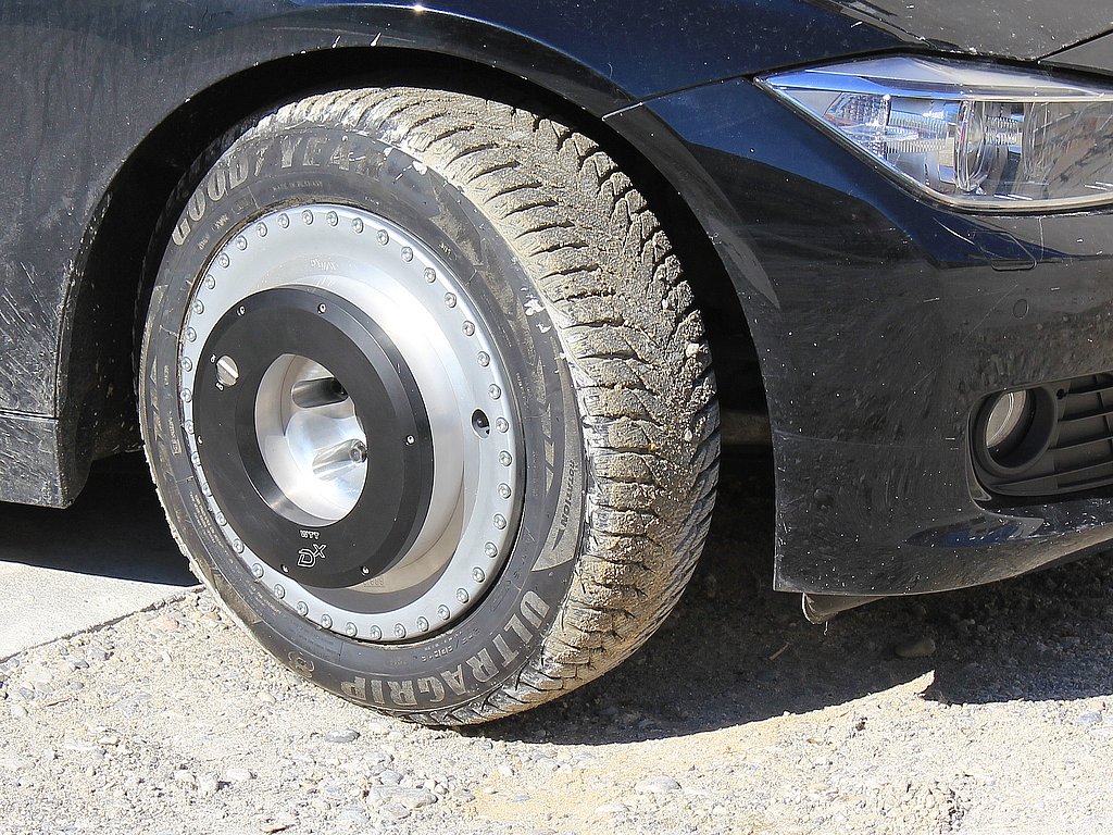 A flexible adapter system enables rapid installation on almost every type of vehicle: rim and hub adapters can be freely combined to cover different wheel sizes and offsets. The wheel bolts are readily accessible for quick changing of the sensor enclosure.