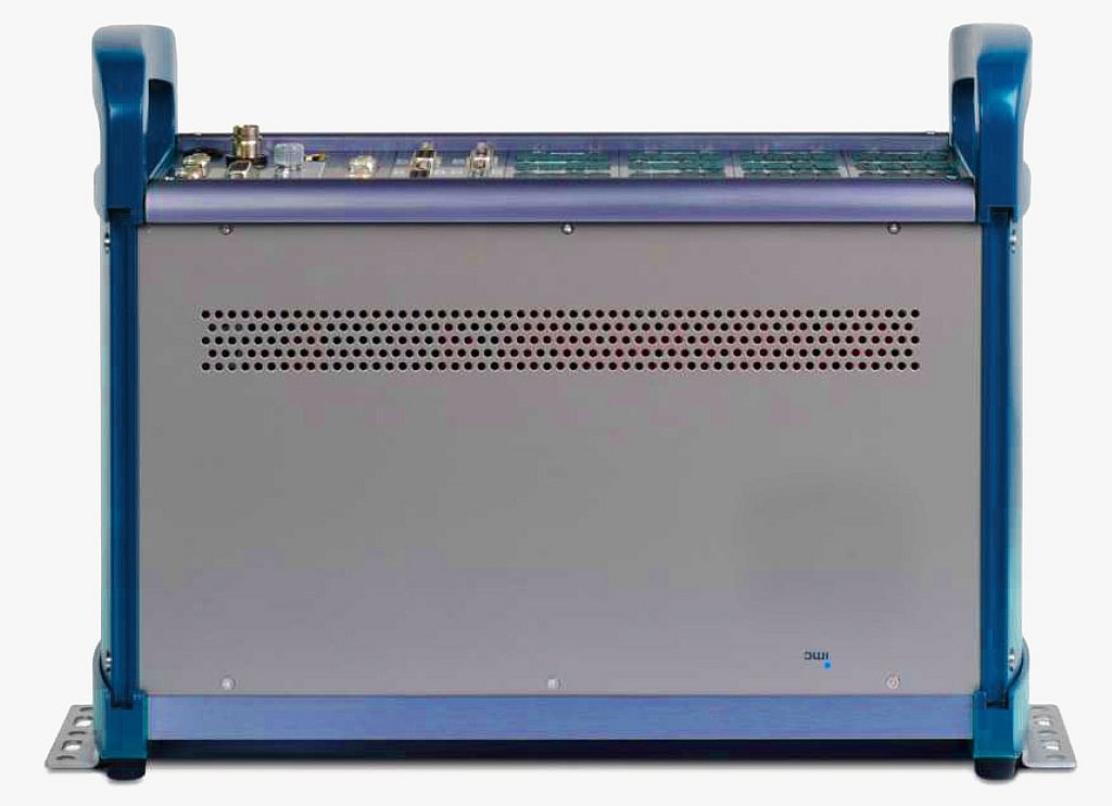 Properties: For devices delivered before 2012, the device must be retrofitted with two new back panel bumper bars (to which the rubber feet are attached), in order to admit the bracket's screws. This back panel mounting bracket can be used both for imc SPARTAN and for imc CRONOScompact devices.
