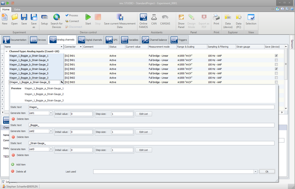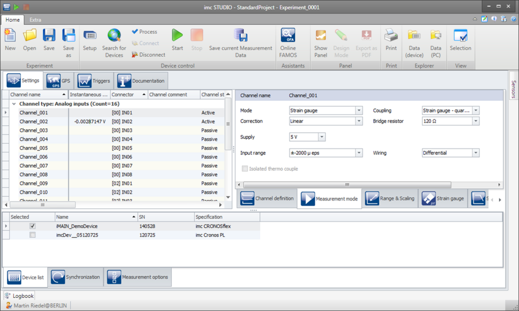 - Simple channel configuration with drag & drop access to the imc SENSORS data base