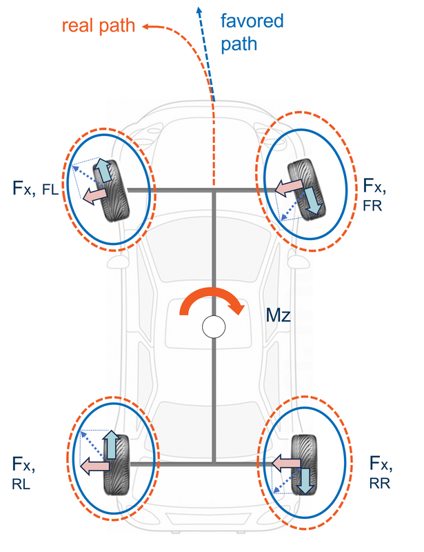 “Torque vectoring" is a technology that is frequently used today. The electrification of the powertrain makes it possible to optimize the torque distribution of the wheels.